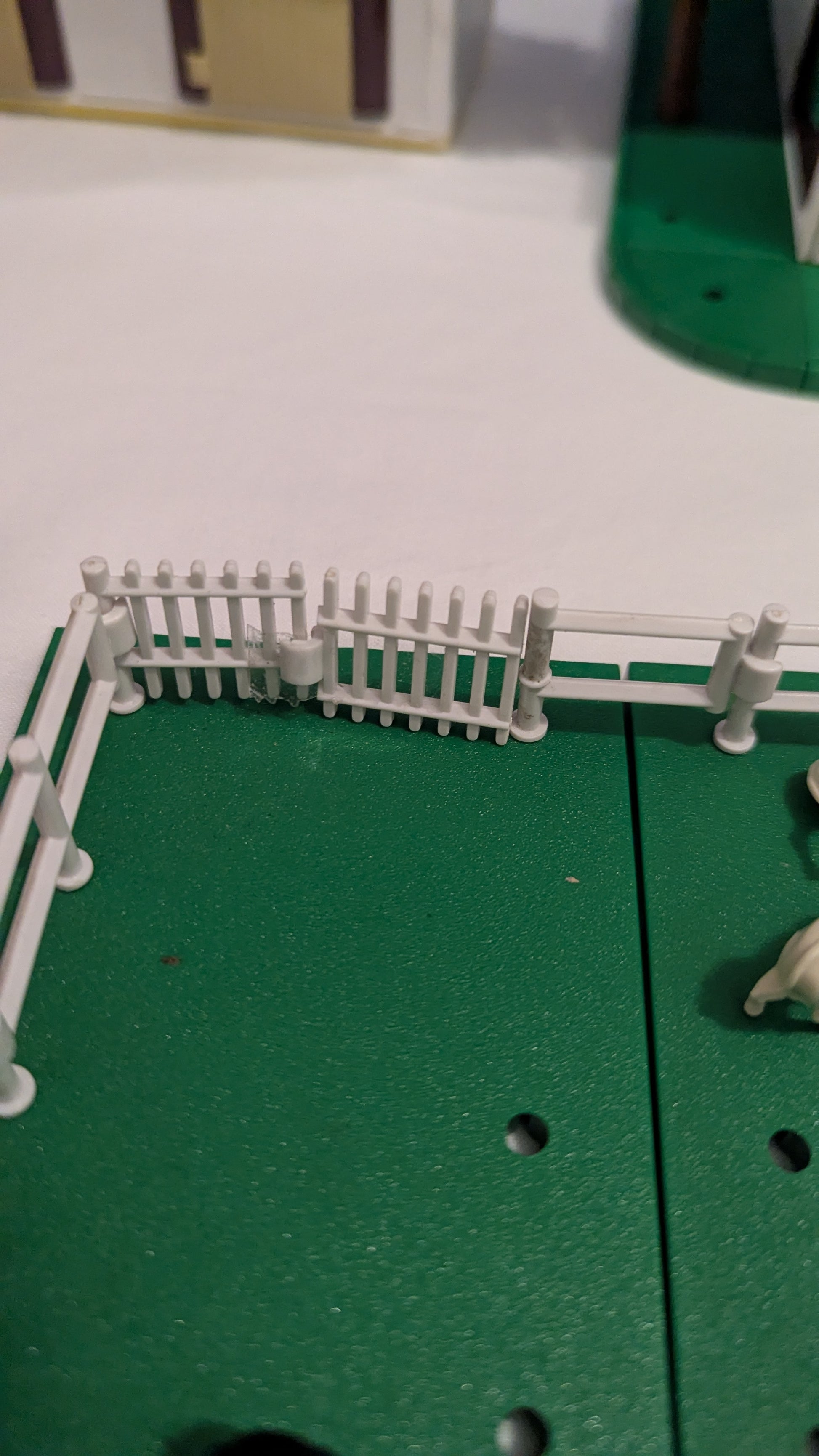 Ce que nous disons : One hinge on the paddock gate is damaged. Missing original people