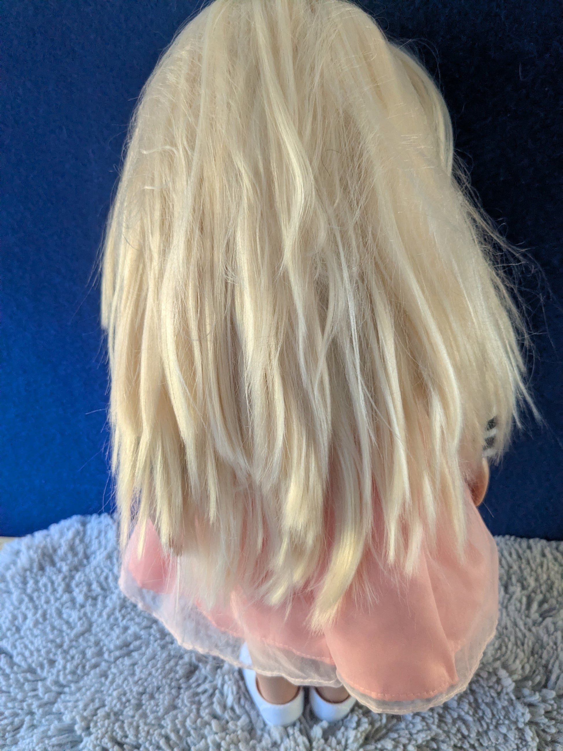 Long, straight blonde hair that can be styled.