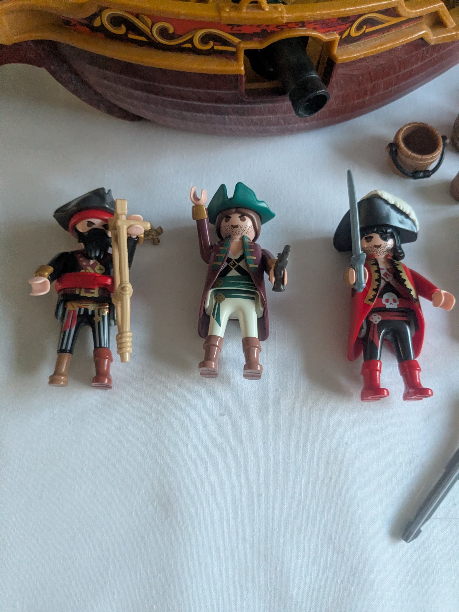 Three pirate figures with weapons and accessories